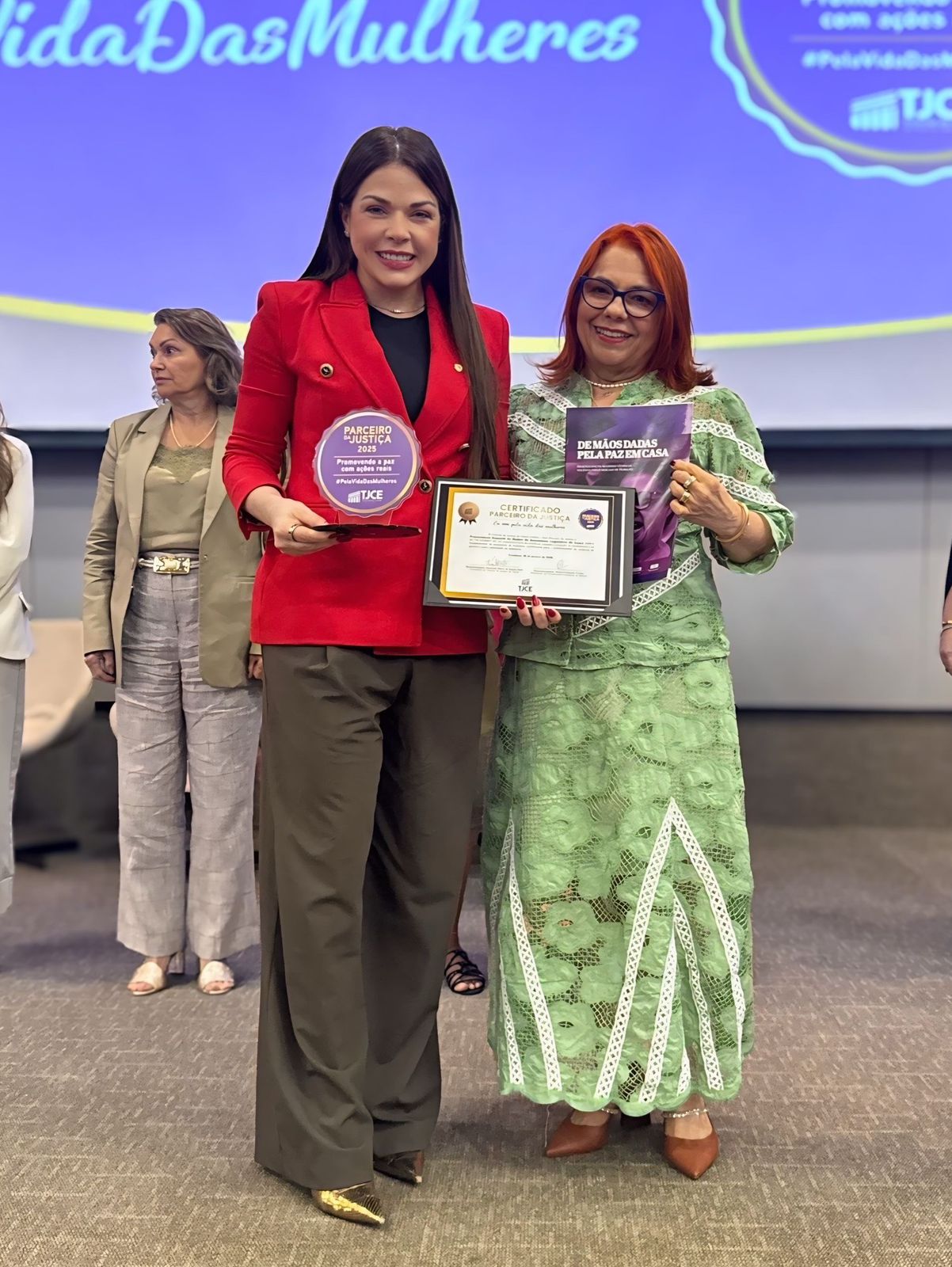 A Procuradoria Especial da Mulher da Assembleia Legislativa do Estado do Ceará foi agraciada com o Selo Parceiro da Justiça 2025, concedido pelo Tribunal de Justiça do Estado do Ceará. A honraria foi entregue pelas mãos da Desembargadora Vanja Fontenele, coordenadora da Coordenadoria Estadual da Mulher em Situação de Violência Doméstica e Familiar, à procuradora especial da mulher, deputada Juliana Lucena (PT), em reconhecimento ao trabalho desenvolvido na proteção dos direitos das mulheres e no enfrentamento à violência de gênero.